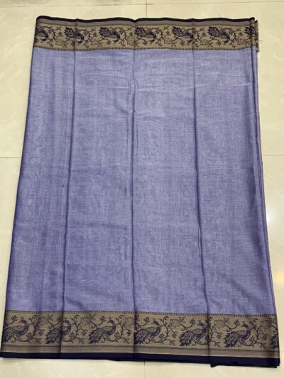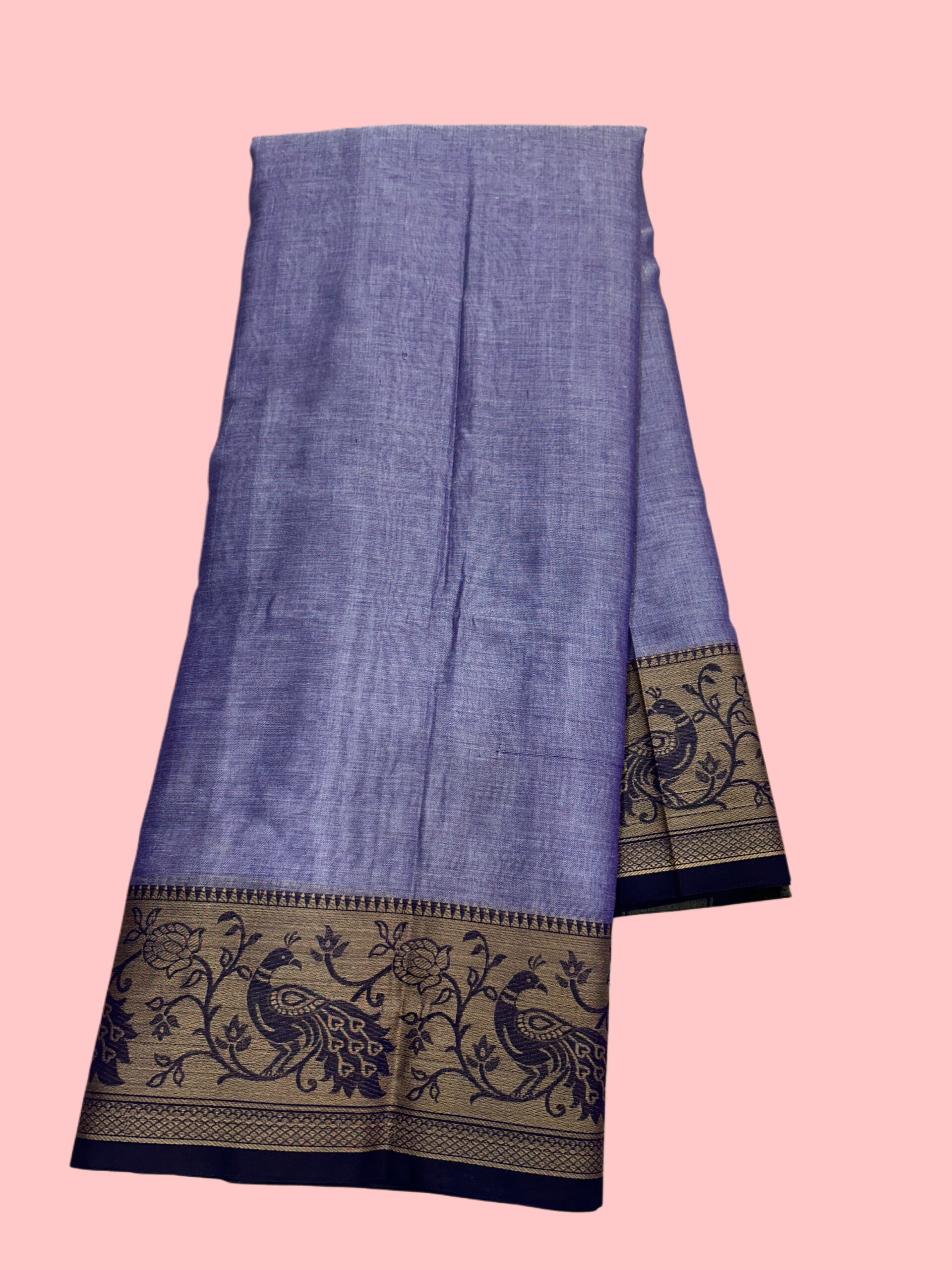 Lavender Pure Cotton Peocock Border Saree For Women